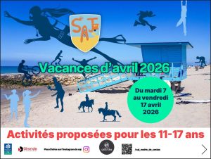 Nous fonctionnons également hors périodes de vacances scolaires, n’hésitez pas à passer au bureau du S.A.J en mairie.